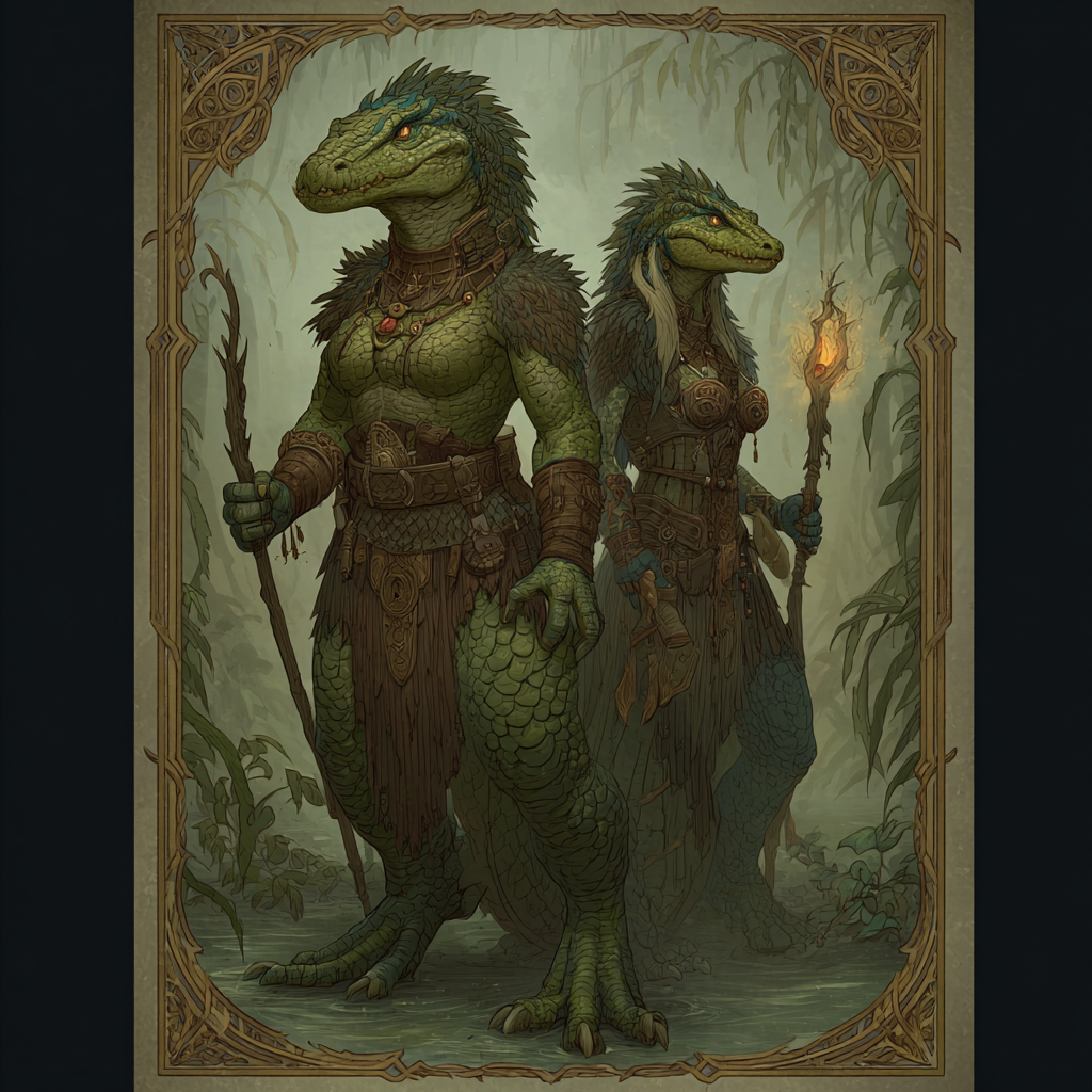 The Sylkrath are the watchers of reed and root. Leaner than other Saurians, with moss-dark scales and amber eyes, they serve as wardens of marsh territories. They speak softly, move carefully, and rarely raise their voices.To them, the swamp is not merely territory but inheritance.