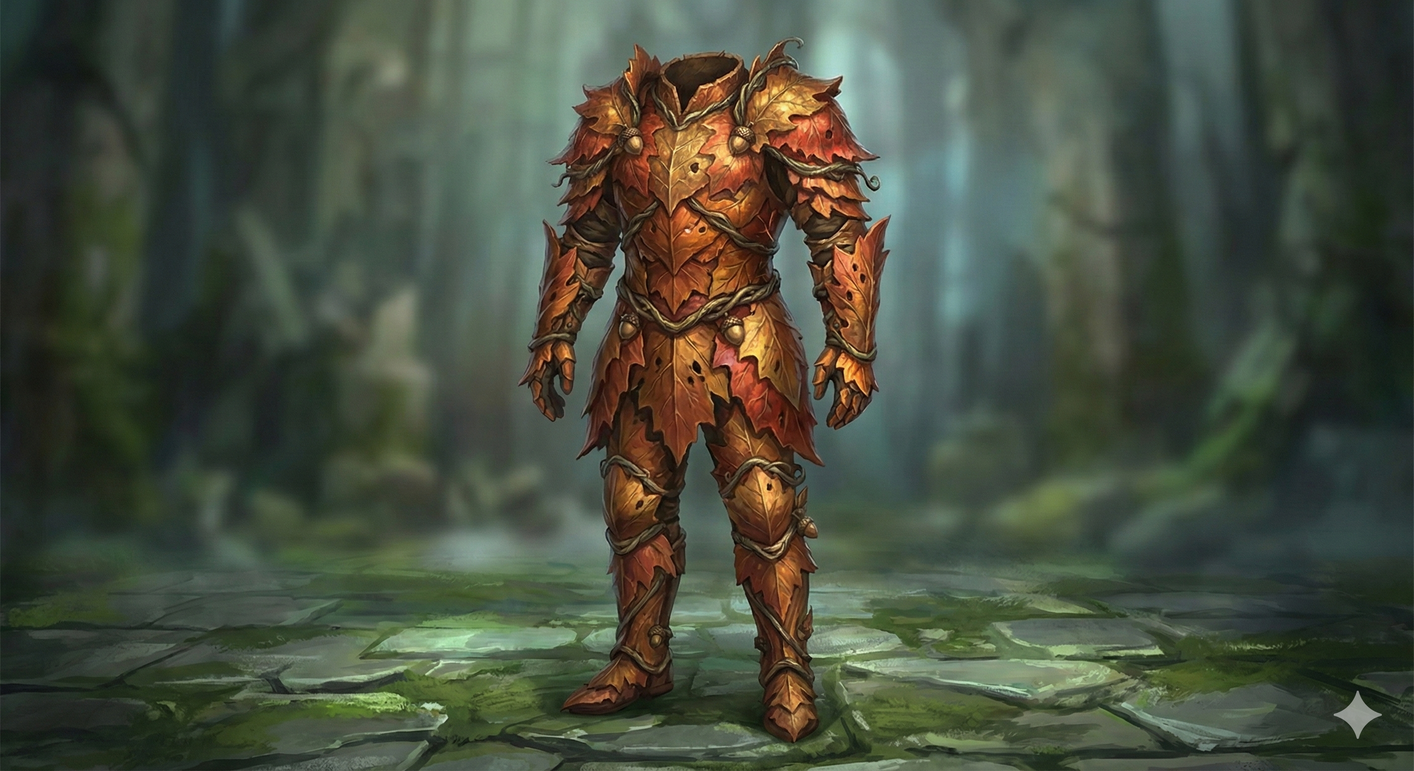 This armor is crafted from treated autumn leaves that are as hard as steel but never crumble. While wearing this armor, your AC is 12 + your Dexterity modifier.
