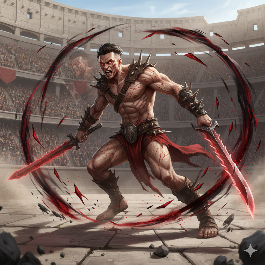 Vérszomjas, kiszámíthatatlan emberi harcos, aki a fájdalomból és a káoszból merít erőt. Minden csapása vad és ösztönös.