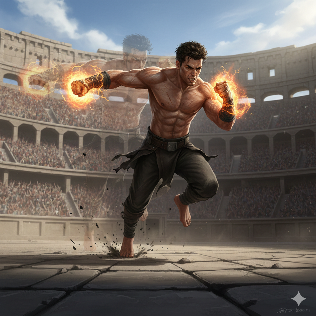Pusztakezes utcai harcos, aki nyers ökölcsapásokkal és kemény, kitartó ütéstechnikával küzd.