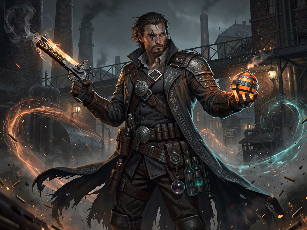 A wizard who blends the arcane with the alchemical, infusing firearms, bombs, and explosives with raw magical power.